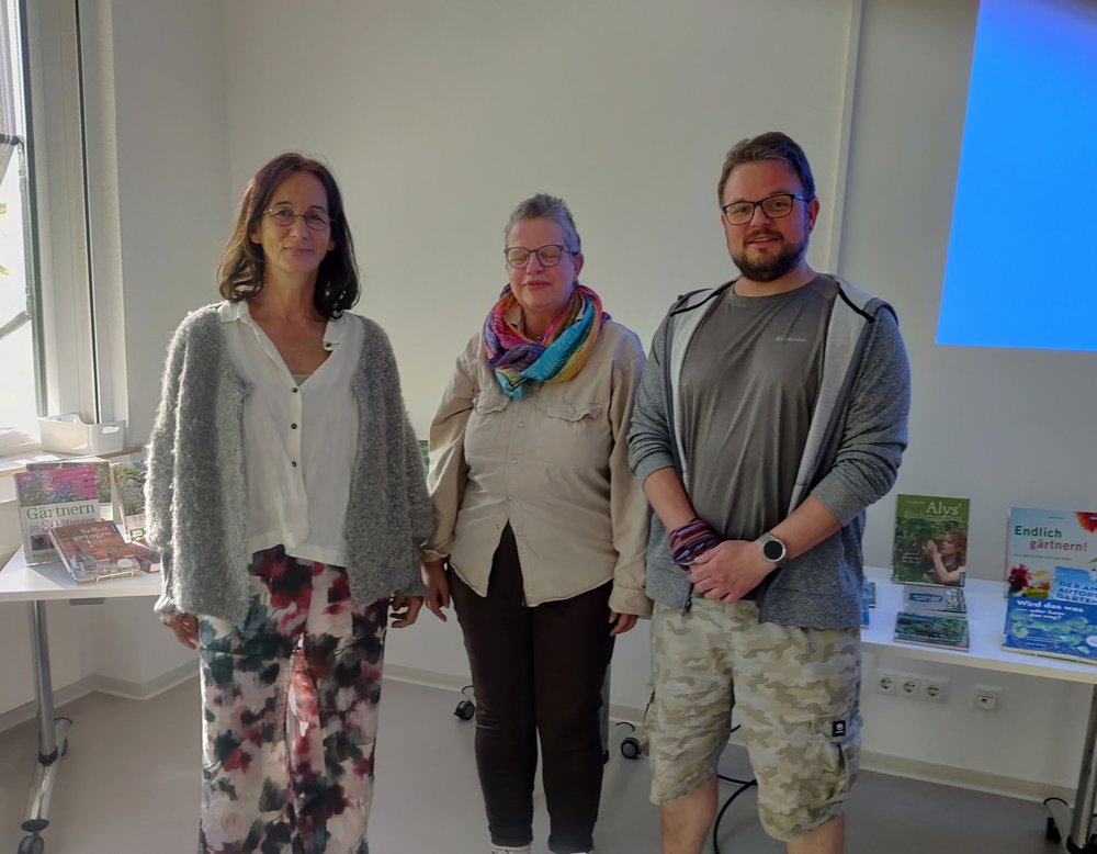 Die Stadtbücherei Lahnstein unter der Leitung von Frau Heike Handlos ergänzte den Vortrag mit einer Auswahl an Literatur zu Urban Gardening, ökologischer Gartengestaltung und Artenvielfalt, die zum Stöbern und Weiterdenken einlädt.