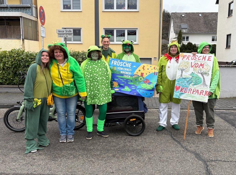 Der Ortsverband der Lahnsteiner Grünen war als Frösche vom Ernst Wagner Teich an den Karnevalsumzügen in Lahnstein unterwegs.